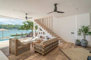 The villa offers spacious living areas, an infinity pool, and panoramic ocean views, seamlessly blending indoor and outdoor living for an unforgettable escape.